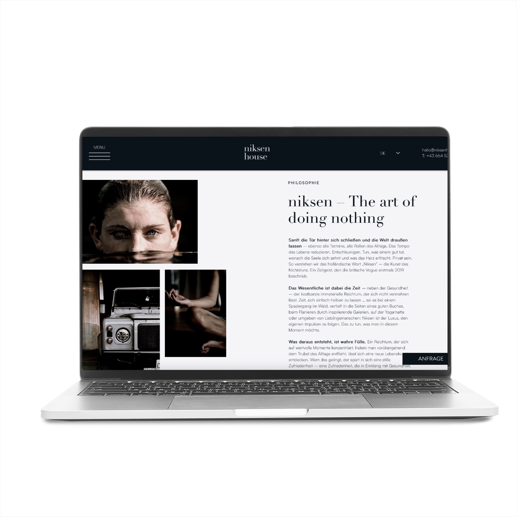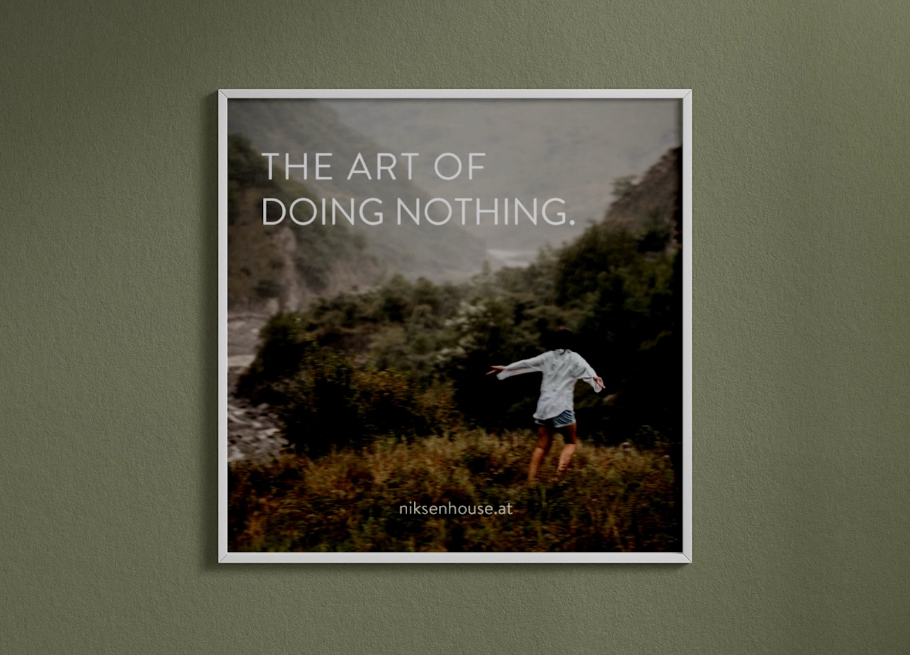 Jedes erfolgreiche Projekt beginnt mit einer präzisen Analyse. Kirchberg ist seit Jahrzehnten ein exklusiver Ski- und Rückzugsort – beliebt bei internationalen Gästen, insbesondere aus den Niederlanden. Die Verbindung zum niederländischen Wort „Niksen“, das die bewusste Kunst des Nichtstuns beschreibt, war der Schlüssel zur Markenidee: ein Ort, an dem man nichts tun muss – weil bereits alles perfekt da ist. Die britische Vogue beschrieb diesen Zeitgeist bereits 2019 als Gegenmodell zur ständigen Selbstoptimierung.
